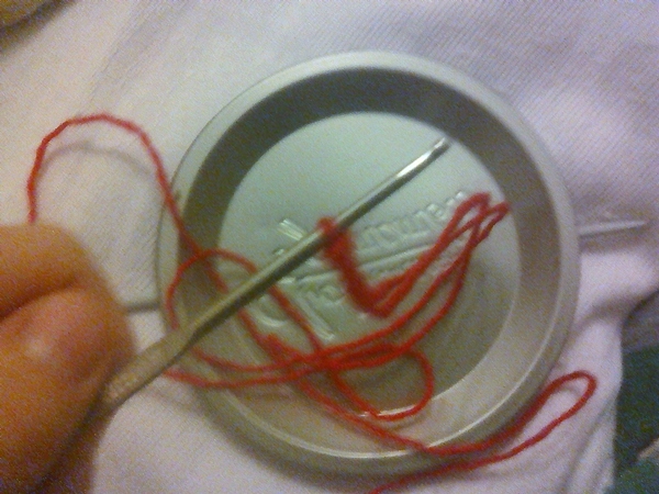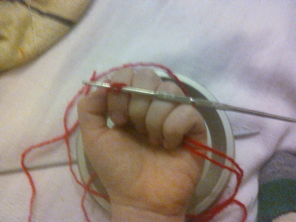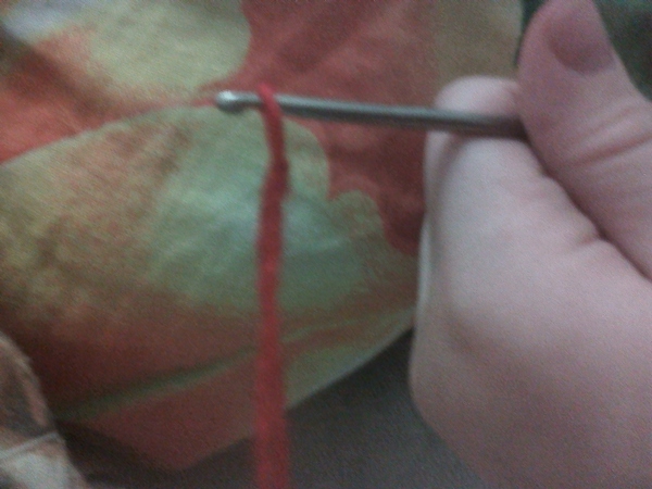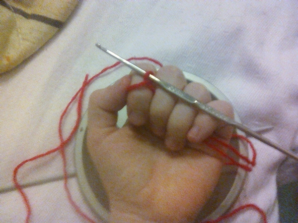 Заводим крючок за нитку. Поворачиваем против часовой стрелки.