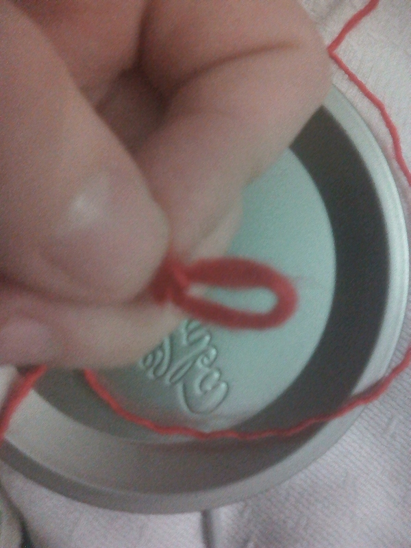 Продолжаем. Когда закончим, тянем петельку чтобы она вышла и была одна нитка.