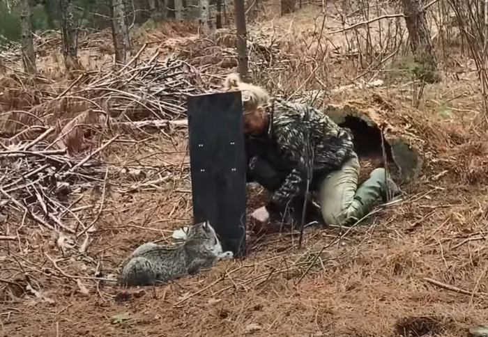 Наконец рысь полностью оправилась от ран. Пришло время выпускать её на волю. Эмили отвезла зверя в глухие леса, подальше от ферм и опасных капканов. Она открыла клетку, и рысь осторожно выбралась наружу.