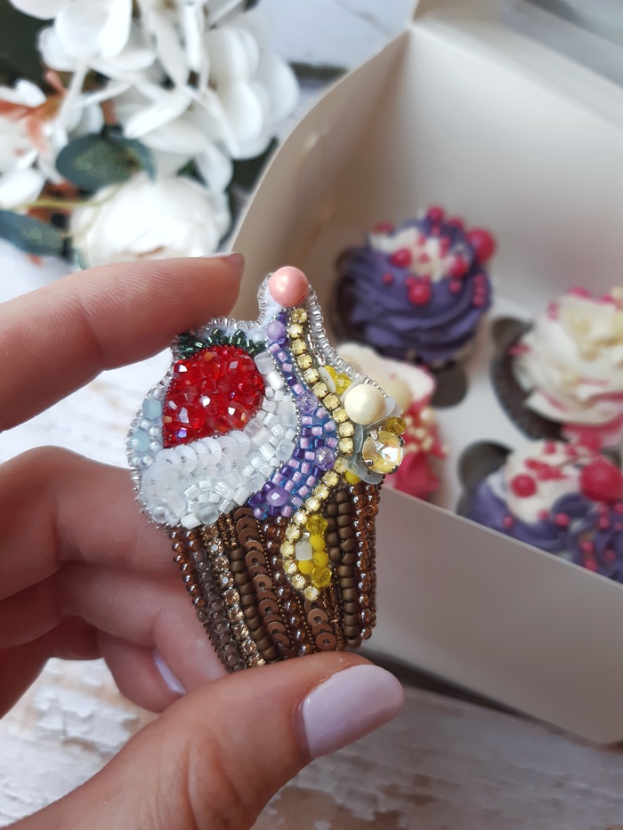 Почему-то для меня аппетитнее выглядит тот капкейк, что вышит бисером, а не покрыт сливочным кремом! 😅