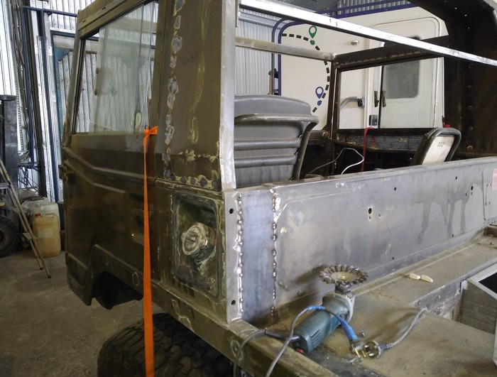 Очень много работы по завариванию дырок от всяческих заклепок и саморезов на кабине (наследие от прошлых владельцев). На это уходит просто колоссальное количество времени.