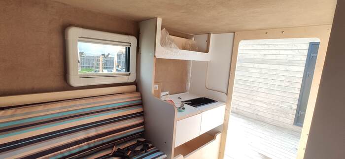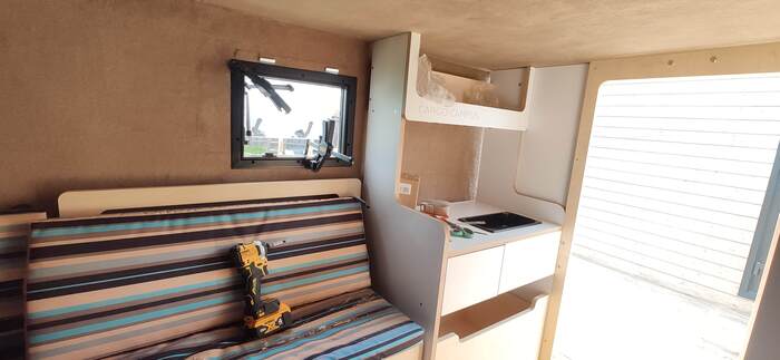 И после понимания что там будет мы приступаем к самому изготовлению мебели. Вот пустой утепленный корпус. Далее ставим каркасы мебели из облегченной фанеры сейба. Фанера дорогая, но учитывая объемы и количество мебели все должно быть максимально легким. Ставим декоративные стеновые панели, перед этим прокладывая черновую проводку для электрооборудования.