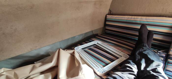 Если отдыхаете в Астрахани, или Крыму, можно снять тент и отражающая способность фольгированного пенофола будет снижать нагрев конструкции от солнечных лучей.