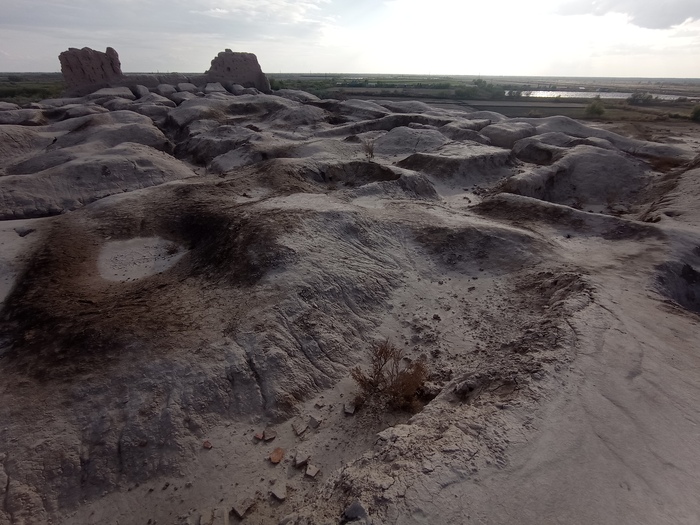 Дороги Узбекистана, западной его части, оказались не дорогами вовсе, а мешаниной из асфальта. Это был Каракалпакстан, суверенная республика с правом выхода из состава Узбекистана, со своим собственным флагом и государственным языком. Бескрайние поля сменились выжженной землей. Когда-то там было Аральское море, но после череды разных экспериментов оно высохло оставив только тревожное напоминание. Мы ехали по этой мешанине но параллельно видели хорошее дорожное покрытие. Однако въезд на него был закрыт, да и в навигаторе этой дороги тоже не существовало.