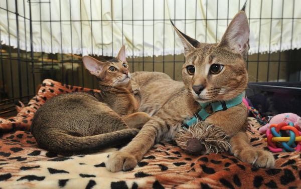 Гидрид дикого каракала и домашней абиссинской кошки. Один из самых редких в мире. Этих кошат не подбирают в подъездах и не пытаются пристроить через пикабу.