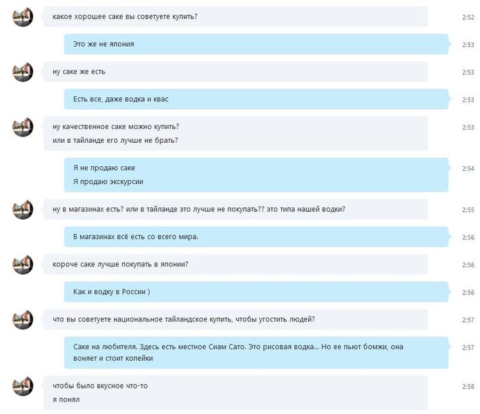2 bangkokers Переписка с клиентом про отдых в Таиланде 8 лет назад У меня просто нет слов... Показать полностью 4 [моё] Таиланд Переписка Бангкок Гонконг Саке Карамбола Длиннопост