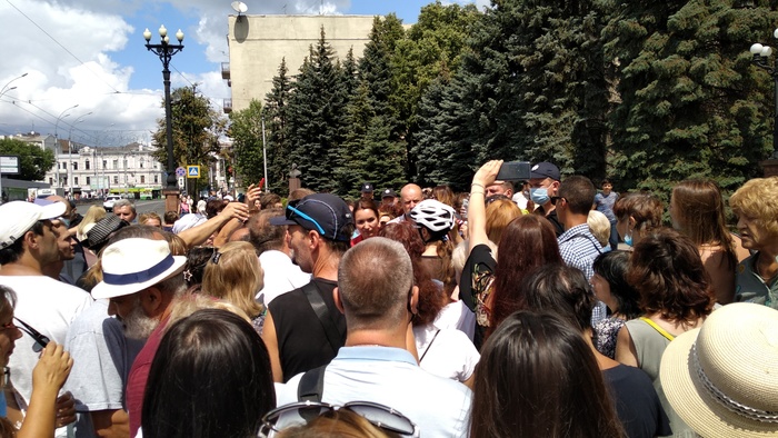 После принятия обращения, люди требовали выхода губернатора Кучера к народу, однако представителям митингующих в ХОГА заявили, что у чиновников начался законный обед, а губернатора в здании нет.