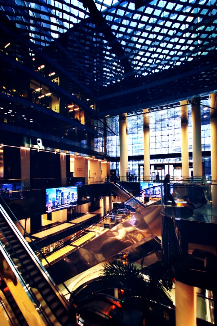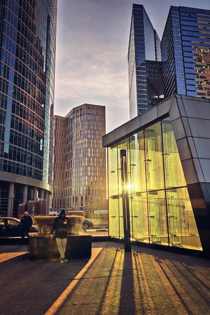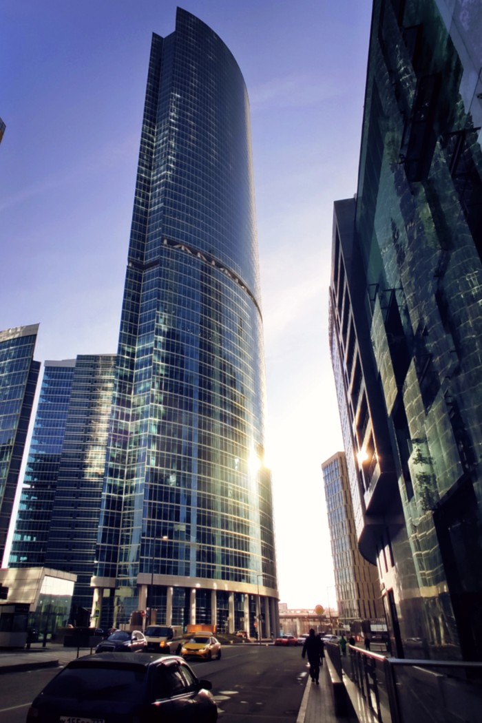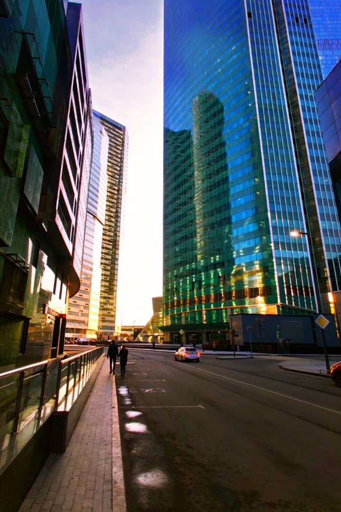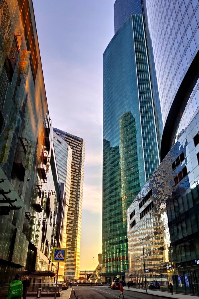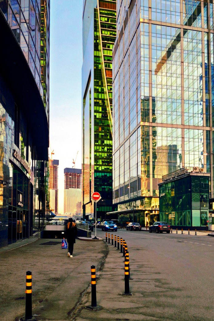 В начале апреля, в самый разгар карантина, довелось мне съездить по работе в столичный островок небоскребов, в Москву-Сити то бишь. И без того холодная обитель стекла и металла явственно впала в транс: тишина, на улице редкие работники офисов, доставщики еды и автомобили... И много воздуха, солнца, бликующих зайчиков...