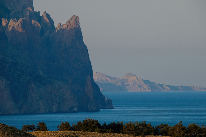 Вид на Карадагский массив, а именно хребет Хоба-Тепе, он же Мертвый Город и хребет Карагач.