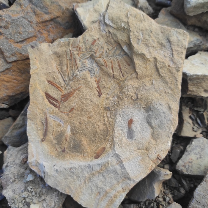 Ходил сегодня за отпечатками древних растений на камнях. Есть находки! Каменноугольный период 298-358 млн лет