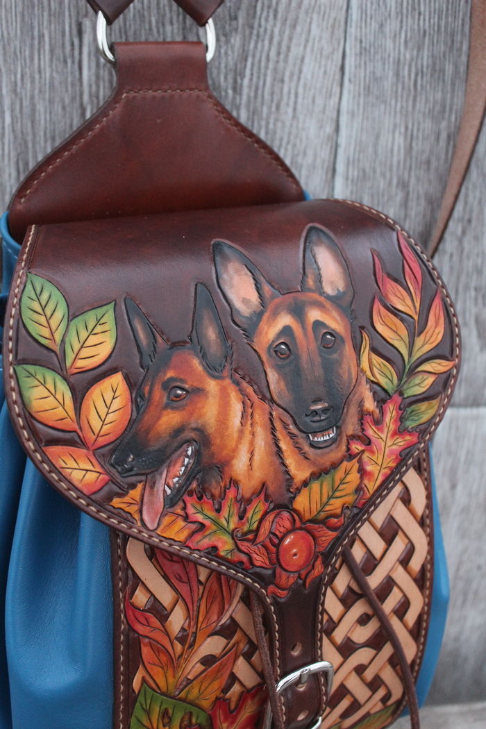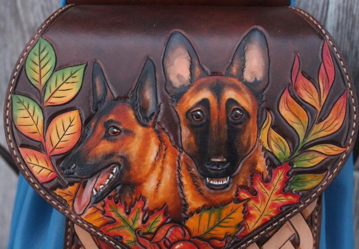 Рисунок выполнен в технике карвинг, окрашен профессиональными проникающими красками для кожи(не стираются и не линяют).