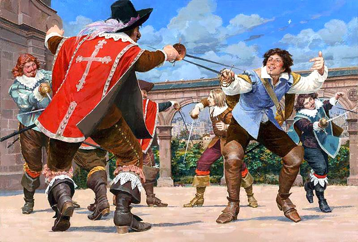 Кроме алкоголя и женщин, самым страшным и повальным увлечением королевских мушкетеров были дуэли. Периодически мушкетеры специально выходили в ночной город, чтобы поискать приключений и заколоть кого-нибудь на поединке.