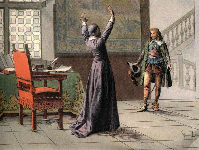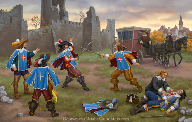 Особенно опасным увлечение стало после того, как кардинал Ришелье принялся решительно бороться со смертоубийством (он логично полагал, что дворяне должны погибать на войнах за короля, а не в подворотне на острие шпаги). Надо сказать, что молодых дворян в XVII веке на дуэлях погибало больше, чем в войнах. Даже один из прототипов героев Дюма, Арман де Сийег д’Атос д’Отвиль, был убит в поединке у рынка Пре-о-Клер 21 декабря 1643 года.