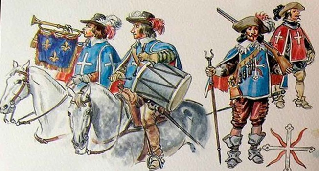 Технически все солдаты, вооруженные мушкетами, были мушкетерами. Но те, кто носили это обозначение как почетный знак, составляли личную гвардию французского короля Людовика XIII. То время было неспокойным для Франции. Протестанты, известные как гугеноты, выступали против господства католической церкви. Вспыхнули ожесточенные религиозные войны. Борьба за власть между королем, дворянством и церковью была постоянной, нередки были и покушения.