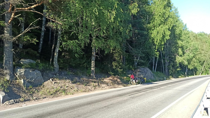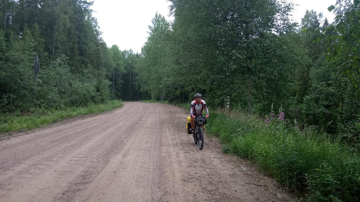 Машины тоже не исчезли совсем, каждая оставляет в воздухе серый туман пыли. С озёрами облом. На одном болотистый берег и нет ни клочка ровной земли для палатки, на второе накатана целая песчаная трасса, и естественно, уже тусуется толпа отдыхающих. Ну а чего я хотел, граница Ленинградской области уже совсем рядом, до Питера меньше двухсот километров. На дворе жаркие летние выходные дни, вот и потянулся народ из душного мегаполиса на природу. Едем дальше.