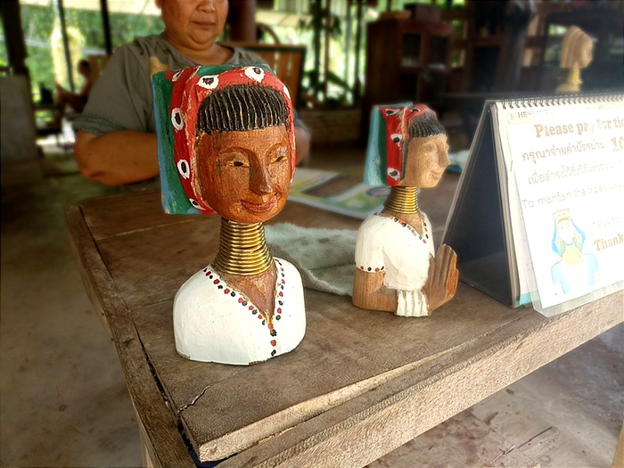 Поначалу меня не отпускало чувство неловкости когда я просил кого-нибудь разрешения, что бы сделать фото или поближе рассмотреть тяжёлые кольца на их шеях. Все, конечно же соглашались и охотно позировали. И это понятно. Это их способ заработать, так же, как и изготовление и продажа всевозможных сувениров и тканей. Однако было ощущение того, что я пришёл в "зоопарк" и разглядываю живые экспонаты.