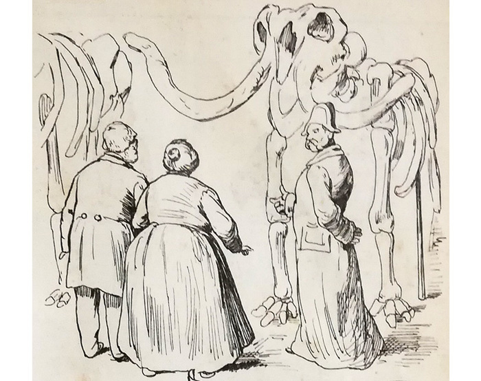 Второе место по популярности в карикатурах занимали мамонты — возможно, отчасти по причине находок их скелетов и замороженных туш в России. Есть даже мнение, что знаменитая басня И. А. Крылова о слоне и Моське была написана под впечатлением от остатков мамонта, доставленных в Петербург из Сибири.