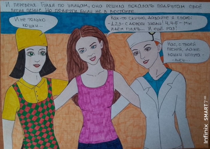 Всё на основании нашей фантазии. Рисовали на альбомных листах, фломастерами. Дело было в далёком 2009 году. К сожалению, некоторые иллюстрации испортились, пришлось перерисовать✍️💖🌞