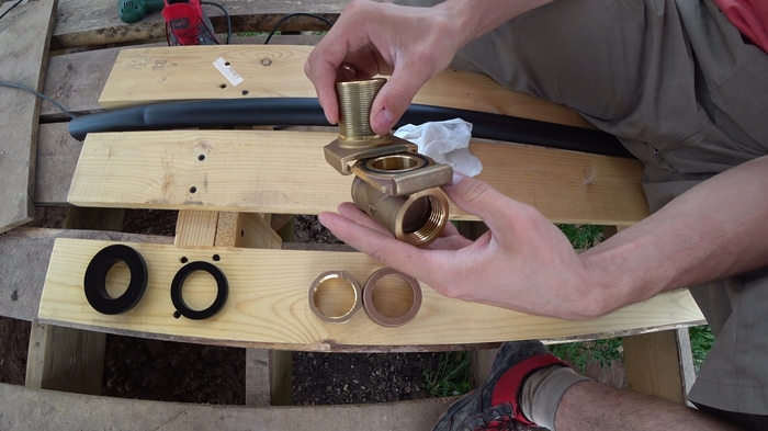 Далее вкручивается сам латунный обратный клапан с металлическим седлом. Он необходим для поддержания постоянного давления в системе, и как следствие защищает ее от гидроудара.