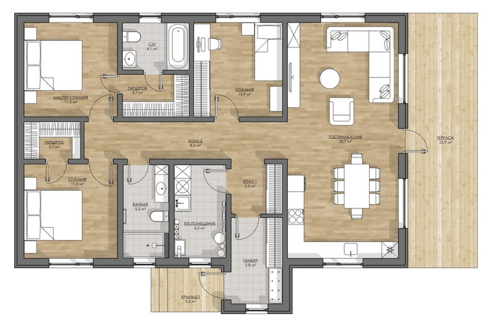 Вариант 1. С самой просторной мастер-спальней (15,7 м²)