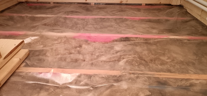 Какой результат? Утеплитель в провисе, гидроветра висит, как простыня пьяного попутчика в плацкарте. Противомышиные сетки волнами, как они прилегают к краям обвязки - непонятно. А главное, что сделать всю эту порнографию гораздо сложнее, чем выполнить перекрытие технологично. Без черновых полов приходится скакать по лагам пола, кто-то обязательно провалится, порвёт противомышиные сетки, ушибётся, переломается. Но если ты не владеешь технологией - все процессы кажутся сложными.