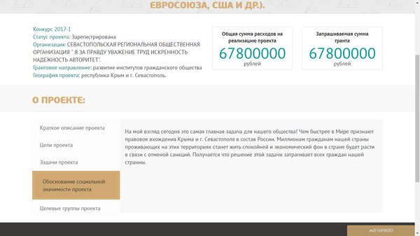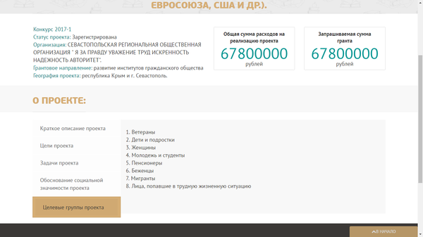 Пруф: http://президентскиегранты.рф/Project/View/9236