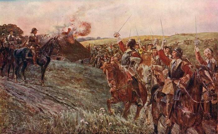 В начале войны Кромвель возглавил отряд из шестидесяти всадников, экипированных им на на собственные и заемные средства. В первом сражении войны, в битве при Эджхилле, которую парламентские войска проиграли, отряд Кромвеля проявил себя хорошо, и избежал серьезных потерь. Но в этой битве силами парламента командовал граф Эссекс, а он был членом Тайного совета Англии, и преследовал неизвестно чьи интересы. В то время в Англии все смешалось, ведь гражданская война- это абсолютное зло для любой страны.