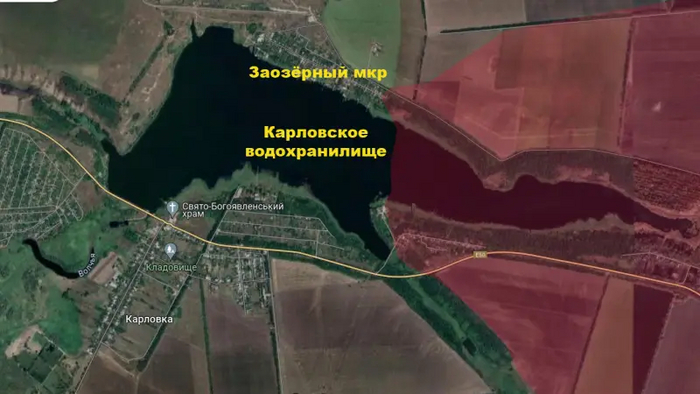 Накануне сообщалось о том, что российские войска контролируют до половины территории у Карловского водохранилища и вошли в заозёрный микрорайон, относящийся к Карловке. Он находится на северном берегу водохранилища.
