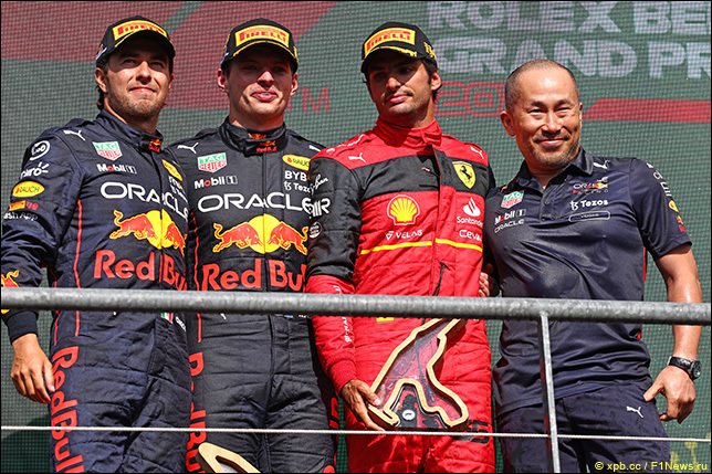 Макс одержал свою 2-ю подряд победу в Бельгии, и если прошлогодняя была несколько неполноценной из-за стихийных бедствий над Арденнами, то в этот раз его превосходство не вызывало сомнений. Подобное доминирование было у Ferrari в Мельбурне, но с тех пор австрийский коллектив значительно доработал машину, чем итальянцы похвастаться не могут. Перес, при отсутствии прочего сопротивления, принес победный дубль. Обновления Red Bull после Монако явно были сделаны в пользу Макса, и одним свежим мотором нельзя оправдать то, что стартовав на 12 позиций выше партнера, Чеко проиграл ему на финише 18 секунд. Подиум замкнул Сайнс, что, с одной стороны, выглядит поражением, учитывая старт с поул-позишн, а с другой стороны, выглядит безысходностью на фоне темпа Red Bull.