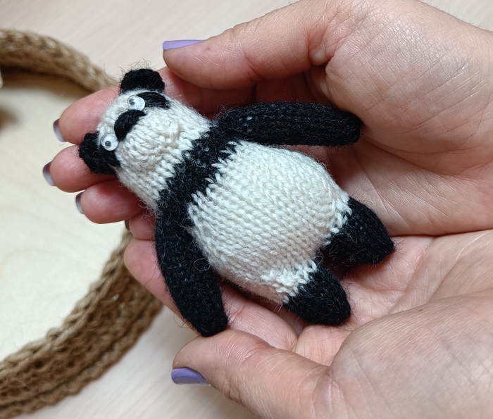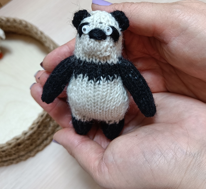 Панда мэн из натуральной шерсти, карманный друг, размером меньше ладони. Пучеглазый, забавный и толстопузый.