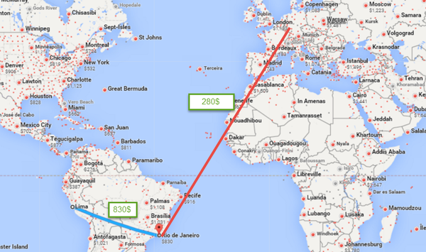Это очень близко к Перу. Расстояние почти тоже, но стоит 150 $. Это то, что нужно. К тому же с пересадкой в столице Бразилии. Урааа! Побываю ещё и в столице Бразилии, а временной промежуток почти такой же.