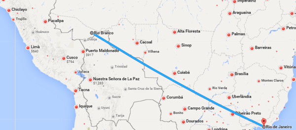 Зная, что внутренние бразильские авиалинии относительно дешёвые, начинаю искать перелёт из ближайшей точки к Перу в Бразилии. И нахожу из Рио Бранко. Это джунгли, что тоже круто.