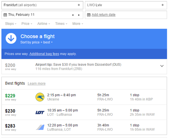 Итого: Франкфурт - Львов 230$, а Франкфурт – Стамбул – Львов 135$ Плюс 100 $. на посещение Стамбула.