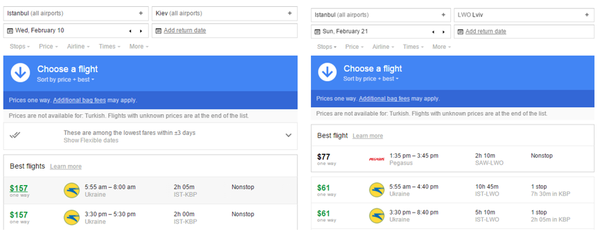 Вот фокус: Стамбул – Киев 160 $, а Стамбул – Львов 60$ с пересадкой в том же Киеве. То есть можно взять билет до Львова и выйти в Киеве. Эту логику мне не понять, да и я давно уже её не ищу.