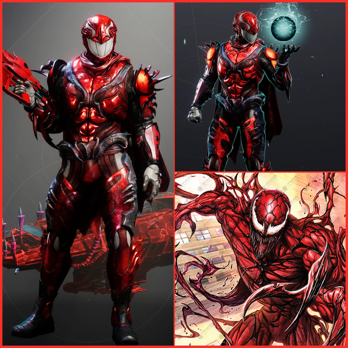 Попытки повторить героев Marvel в Destiny 2 уже не новы: раньше игроки превращали Стражей в Магнето и Звёздного Лорда (Питера Квилла). Однако на этот раз пользователь Reddit под ником iixVanquishxX прославился образом Карнажа — кроваво-красного симбиота Клетуса Кэседи.