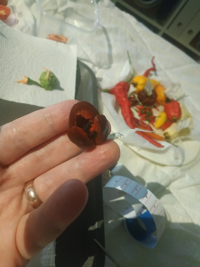 Наковырял немножко семян, две недели они сохли под вентилятором, и наконец-то можно убрать их на хранение.