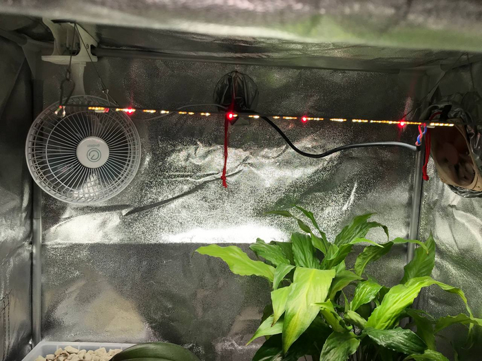 Всё это подключено к таймерам, чтоб было 16 часов дня и 8 часов ночи. Кулер и увлажнитель работают нон-стоп.