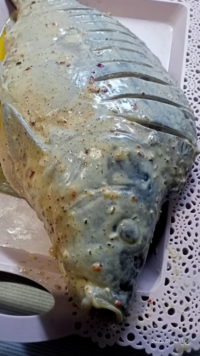 Итак, опять карп. С зеркальным возни с чисткой от чешуи нет совсем, но выпотрошить надо тщательно, жабры удалить, промыть тщательно и обсушить полотенцем. Бумажным.