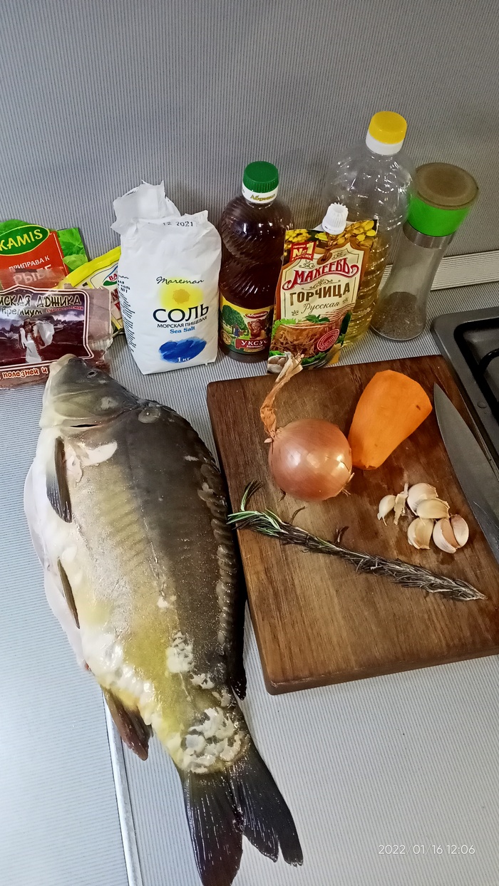 И. Предвижу ворчание, что, мол тыщупицот часов надо потратить, чтобы такую рыбу приготовить. Граждане! Рыбу сейчас при покупке, в любой лавке, вам почистят, выпотрошат и даже жабры ей выдерут. Остальная подготовка займёт максимум полчаса. А пока духовка будет карпа запекать, можно заниматься чем угодно. Так что – полчаса времени и надо, чтобы потом вкусно поужинать.