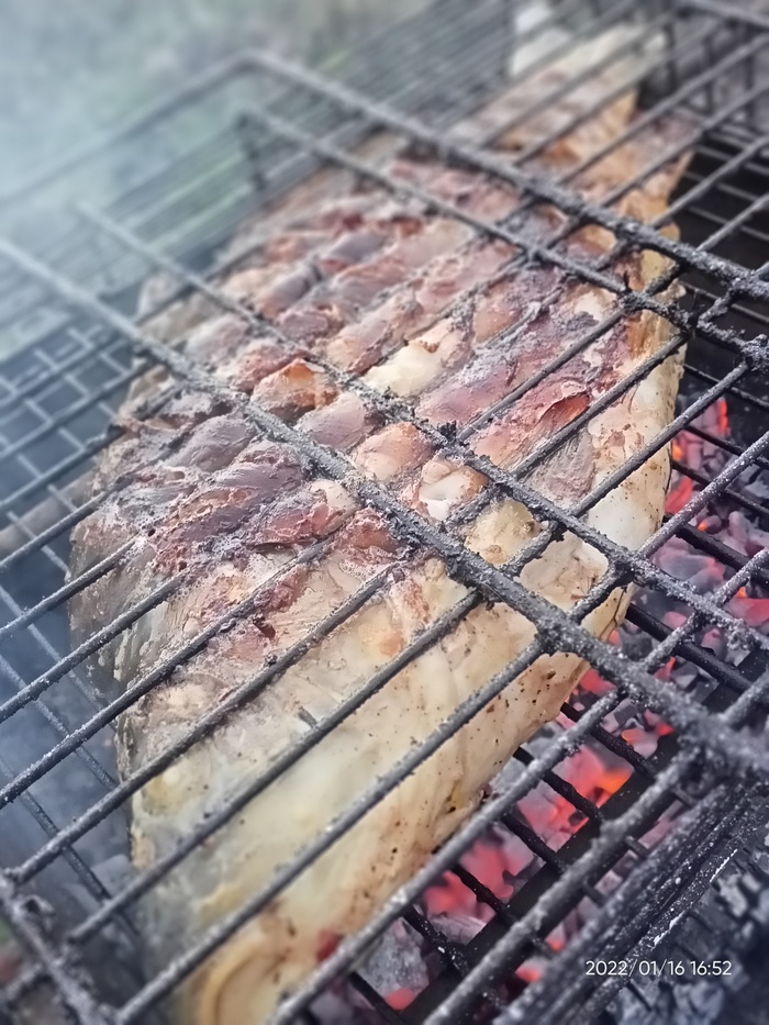 А вот фрагмент от карпа, который запекался в духовке полной тушкой. Надо заметить, что получилось интереснее. Но тут еще, может быть и маринад «виноват»?