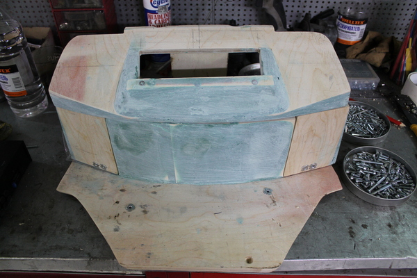 Для её размещения соорудили незатейливую конструкцию из фанеры и немного её подшпатлевали.