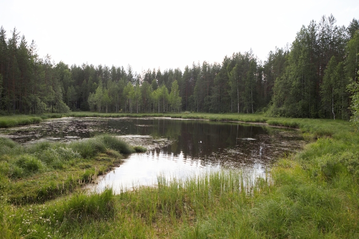 Озеро рядом с поселком Река Емца Плесецкого района. С детства слышал легенды, что иногда вся вода из озера уходит, но так никогда этого не видел. Но все дети знали, где в дне дырка, летом мы плавали на плоту и пятиметровой жердью находили место, где жердь ныряла глубоко и полностью скрывалась под водой, а через какое-то время всплывала, причем в любом другом месте глубина озера не превышала 1-2-х метров. За последние лет 50 в озере тонуло немало людей, но часто тел так и не находили. И многие годы я думал, что это только легенды, пока не увидел сам в октябре 2010 года. Именно тогда и была сделана фотка с лужицей посередине.
