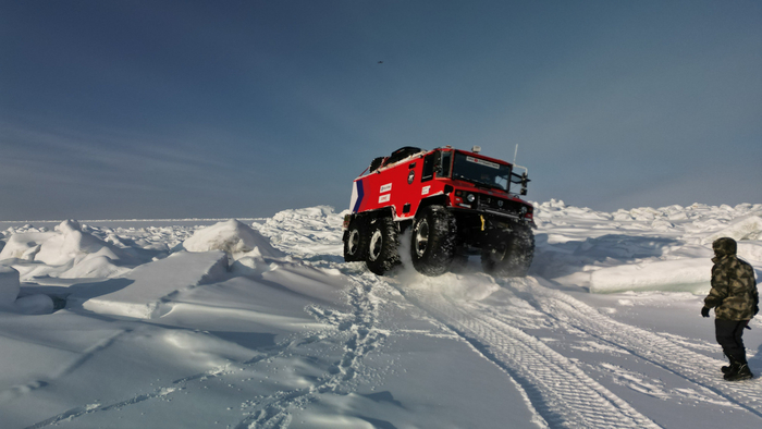 Пробиться сюда с Таймыра оказалось непросто даже для наших огромных вездеходов. Трещины и торосы стояли на многие километры, словно Великая Китайская стена.