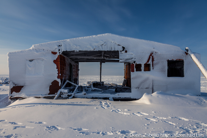 Заброшенное зимовье охотников или полярка в Якутии на берегу острова в Арктике⁠⁠
