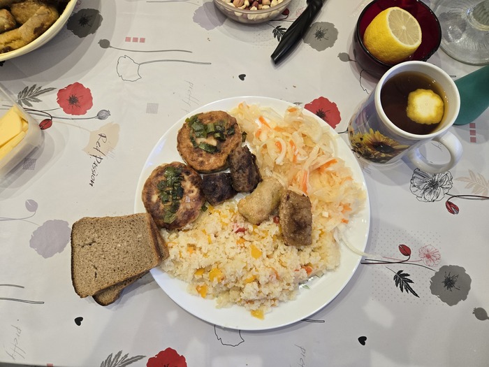 Дело было в минувшее воскресенье. К котлетам гарнир нужен - будет рис с овощами. В качестве салата - квашеная капуста. Опять же собственноручно засоленная и на балконе почивающая. Ну и, раз пошла такая пьянка, печень с икрой тоже пожарим.