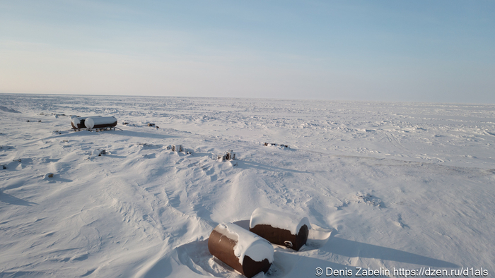 По тундре были разбросаны большие ёмкости для дизельного топлива. Такие мы неоднократно встречали на заброшенных полярных станциях вдоль побережья Таймыра — в бухте Марии Прончищевой, на станциях «Андрей» и «Усть-Таймыр».
