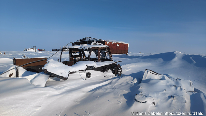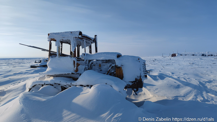 В сотне метров от базы в тундре оказался брошенный трактор-болотоход ЧТЗ-130 — самый подходящий для работы в тундре агрегат на широких гусеницах.