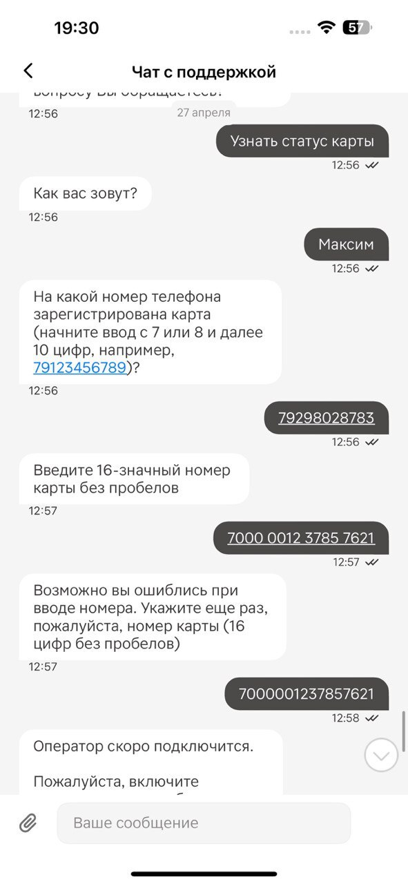 Отвечает только бот, но оператор на помощь просто не приходит, схема какого-нибудь кидалы с рынка, не правда ли?