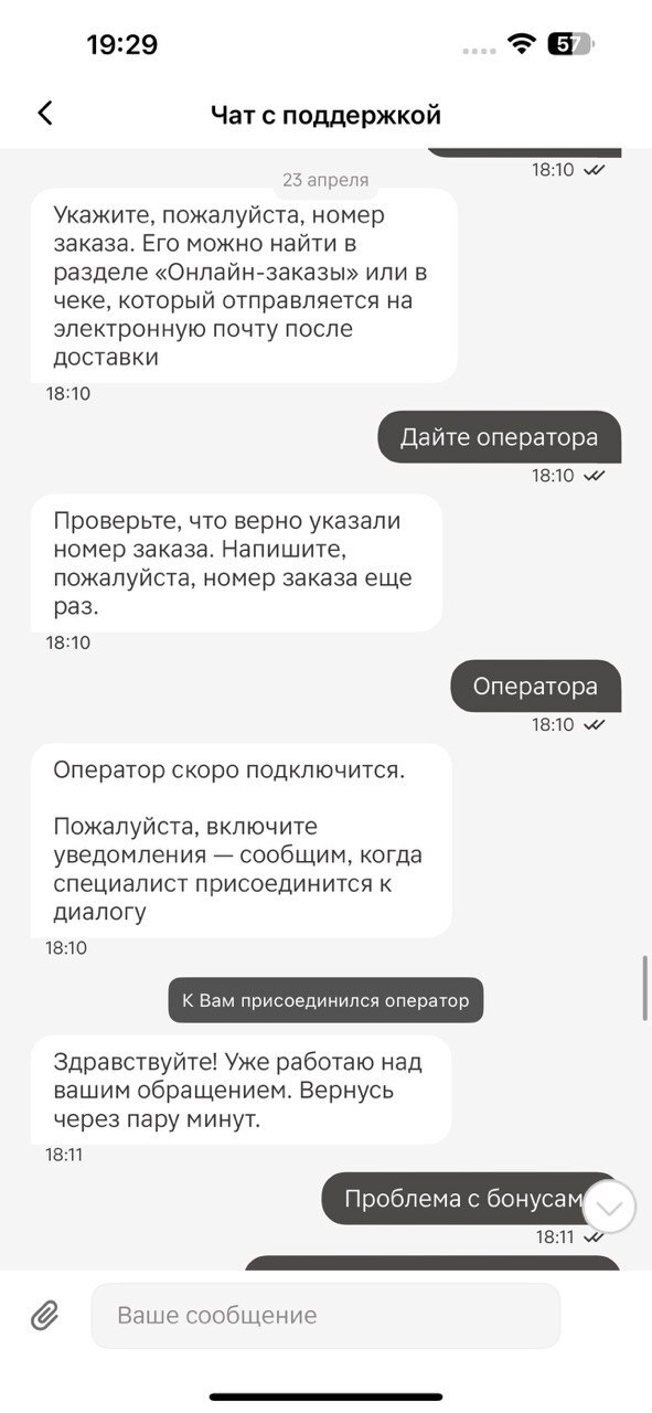О чудо, мифический оператор наконец-то подключился, но видимо что-то пошло не так и он слился сразу, как только узнал о проблеме с бонусами. Смешно, не правда ли?