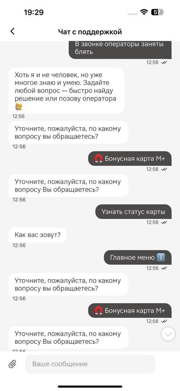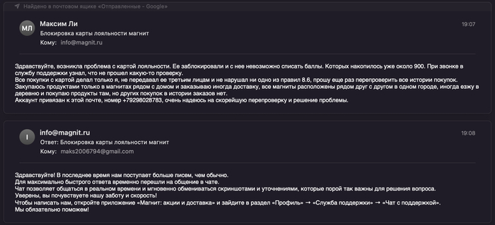 Окей, вы не хотите давать возможность пользоваться программой лояльности, ок, вы решили кинуть меня на 1000 рублей, но неужели так сложно сказать об этом прямо и сразу? Почему нельзя было ответить, мол, дружочек, мы тебя забанили просто так, так что пшел вон, зачем заставлять меня писать вам весь месяц?